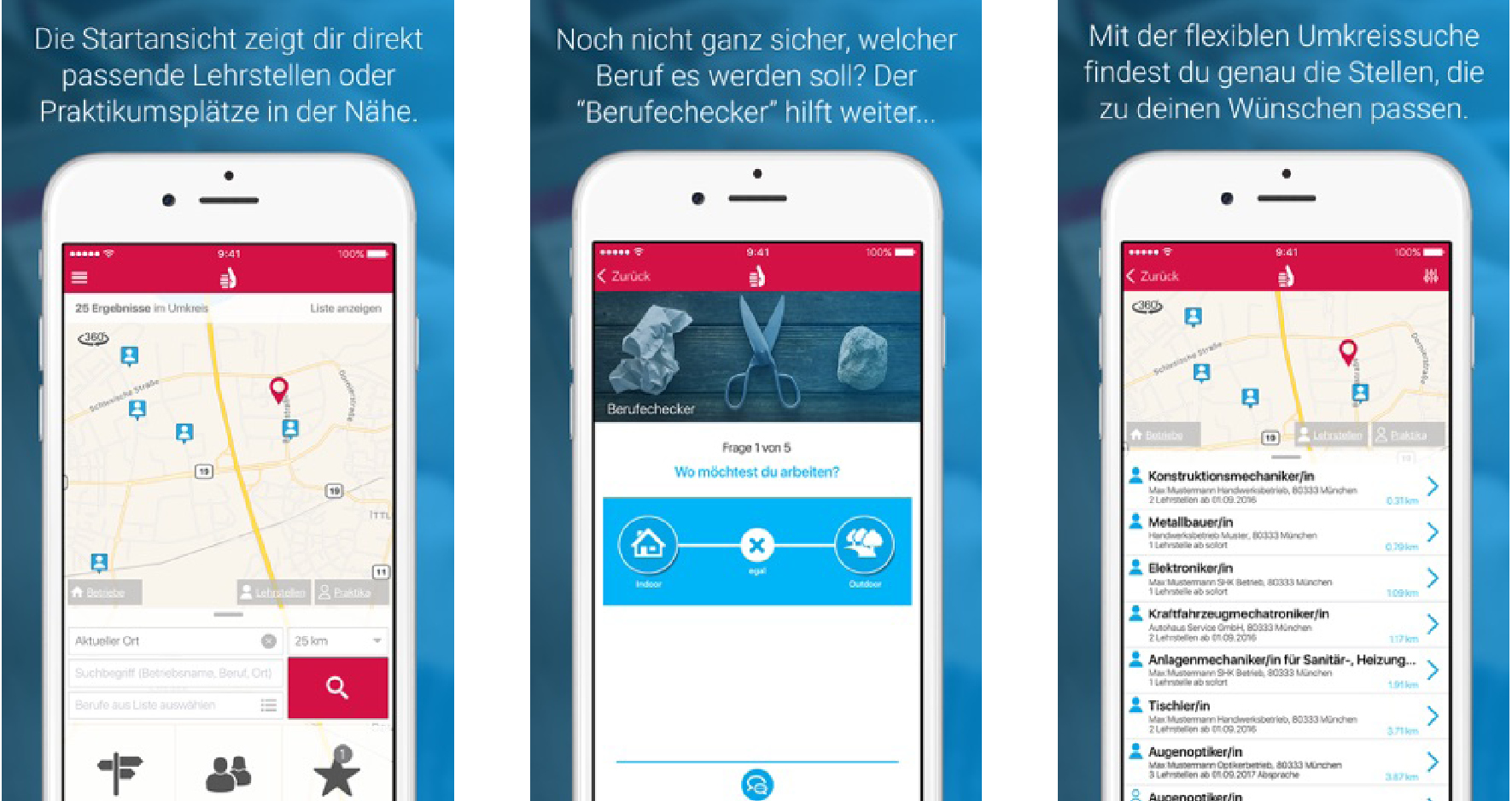 Von der Handwerkskamer gibt es die Lehrstellen-App „Lehrstellenradar“, mit der sich offene Lehrstellen regional finden lassen. Kostenloser Download im App-Store (iOS/Apple) oder Play-Store (Android/Google)