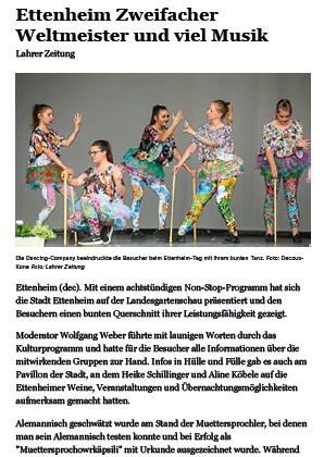 Zuvor gab es selbstgemachte Musik des Duos „Falt’n los“ mit Jasmin Ruf (Gesang) und Michael Stütz (Gitarre). Außerdem haben ein Migrant und drei Migrantinnen über ihr Ankommen in Deutschland und Ettenheim reflektiert und über ihre wichtigsten Schritte in den vergangenen Jahren berichtetet (siehe Presseartikel).