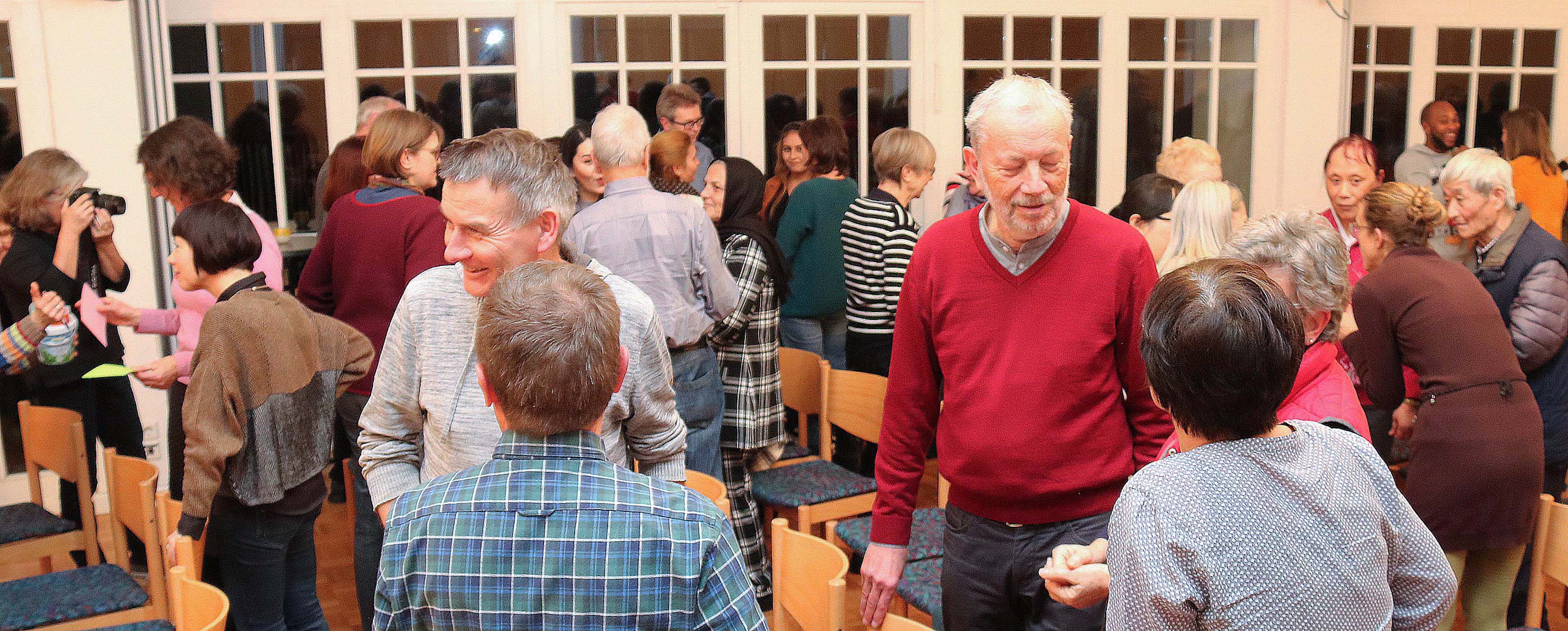Daher trafen sich 5. Mai 2014 auf Einladung von Beate Kostanzer und Hans-Georg Dietrich eine stattliche Anzahl interessierte Bürgerinnen und Bürger zum Austausch im evangelischen Gemeindesaal. In einem lebhaften Gespräch wurde überlegt, was wir selbst als Fremde in einem anderen Land bräuchten und was uns helfen würde. Eine Teilnehmerin sagte: „wenn jemand mit mir redet und mich grüßt.“